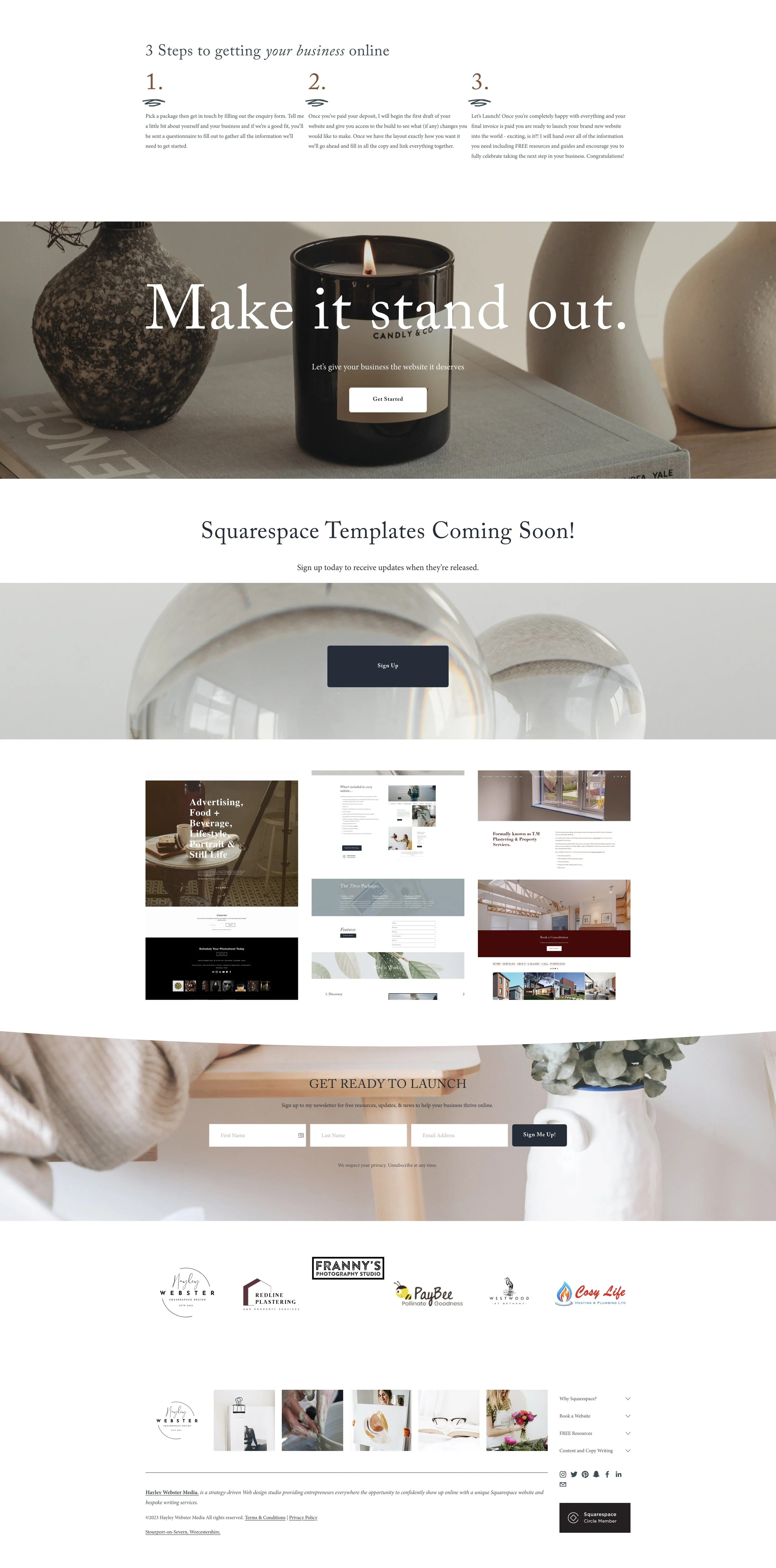 Small business websites built in Squarespace.